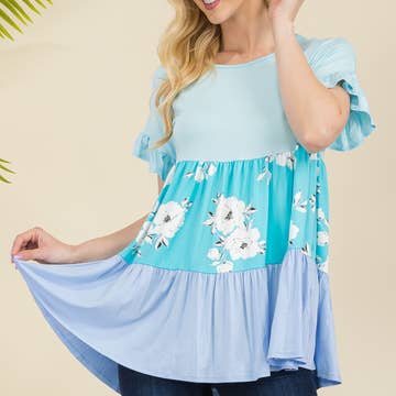 Avery - Wholesale Tunic - Women's - AV1129-JULIA GEO PRINT COLOR BLOCK TOP0