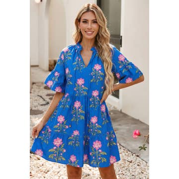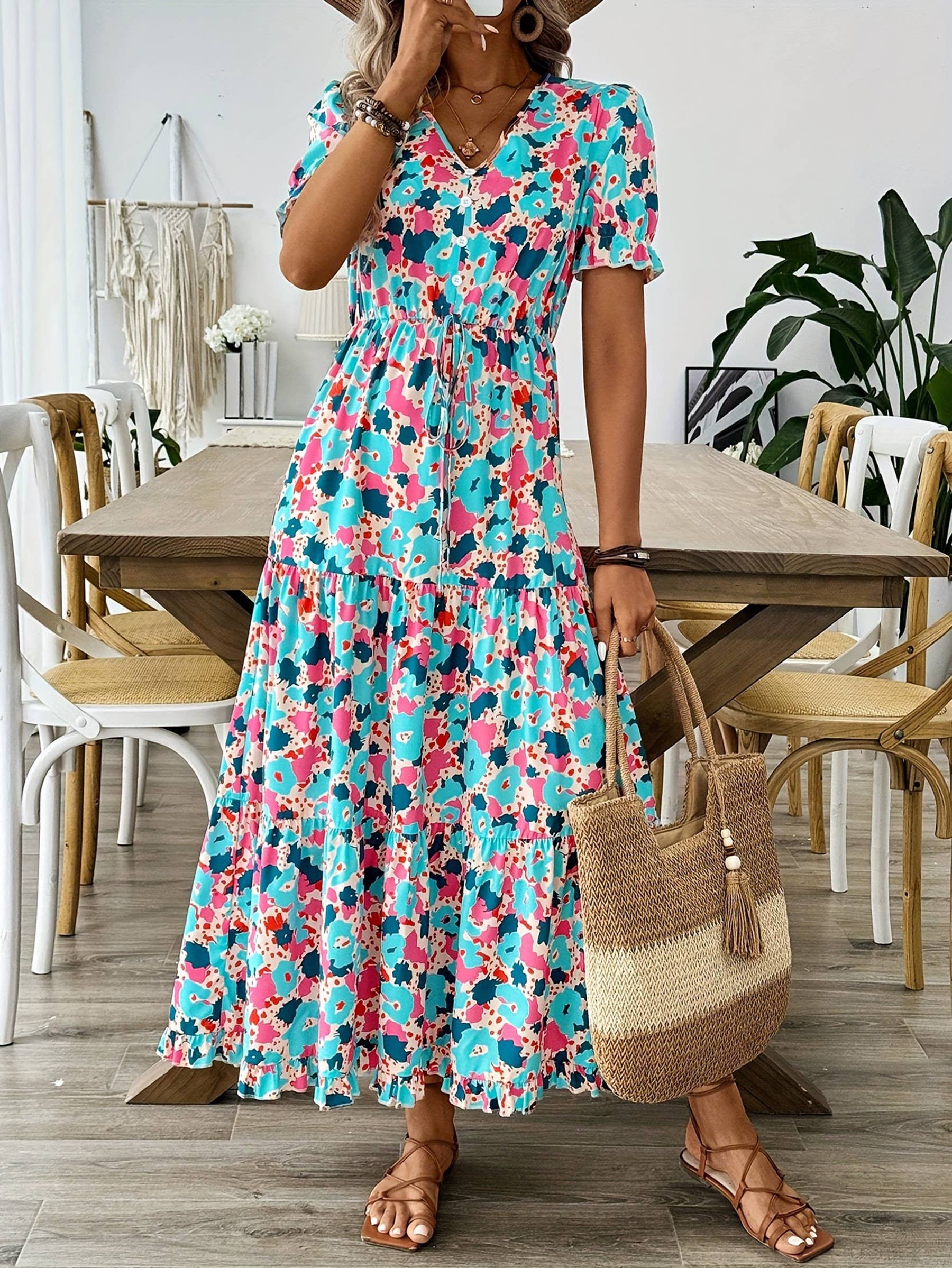 Colorful Floral Cardigan Short Sleeved Lining Dress