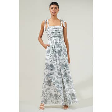 Square Neck Puff Sleeve Wide Leg Antique Floral Jumper