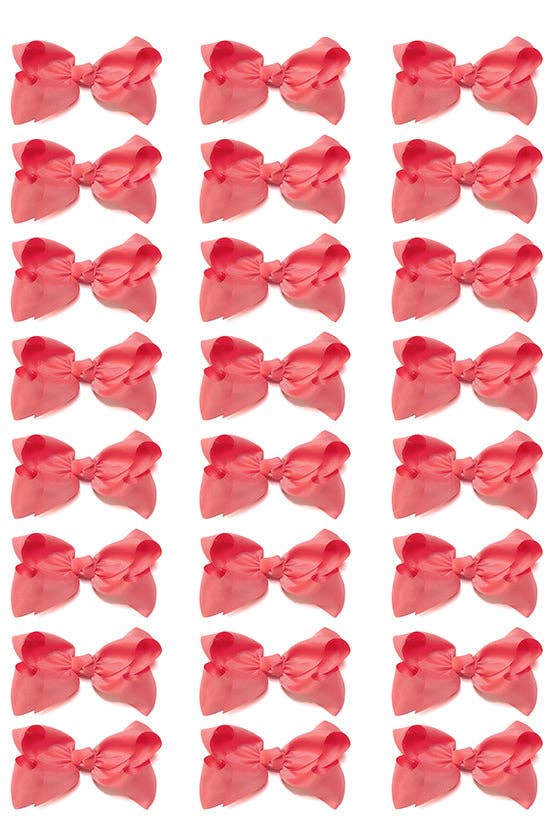 This sturdy bow measures 1.75". Perfect for little ones who need their hair pulled back or older children who like a small clip and a little color in their hair. The box includes 6 bows. The suggested retail price is $18.00. The metal clips we use are steel and strong, with great tension. They are tested in a US laboratory and are CPSIA compliant.