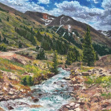 Off of I-70 right as you approach the city of Vail, Colorado, a turn off will lead you to an epic adventure through forests of aspens and pines, through meadows and valley, along rivers and by waterfalls, until you reach a lake at the peak. Here wild mountain goats will come to say hello and get a sip as they make their journey to the next magical place. This soft pastel painting comes in an 8x10 acid free paper, packaged in compostable plastic with a cardboard backing to ensure that prints stay pristine in your shop! *Frame not included