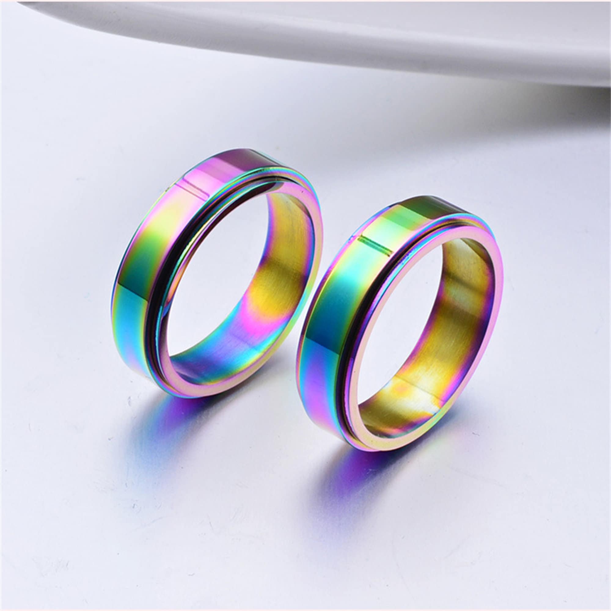 Rainbow Chrome Fidget Spinner Band Ring in Stainless Steel