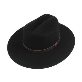 Cattleman cowboy hat in 100% Australian wool. Classic cattleman crown shape with a straight crease down the middle. The brim is slightly upturned on the sides. Great item for hat bars - plain and ready to customize. This material can be be branded, burned, and reshaped with steam. 100% Australian wool Stiff, structured material. Crown size: 57 cm. Roomy fit. Adjustable sizing, hook-and-loop tab inside sweatband Brim: 4 in. Crown height: 4.5 in.
