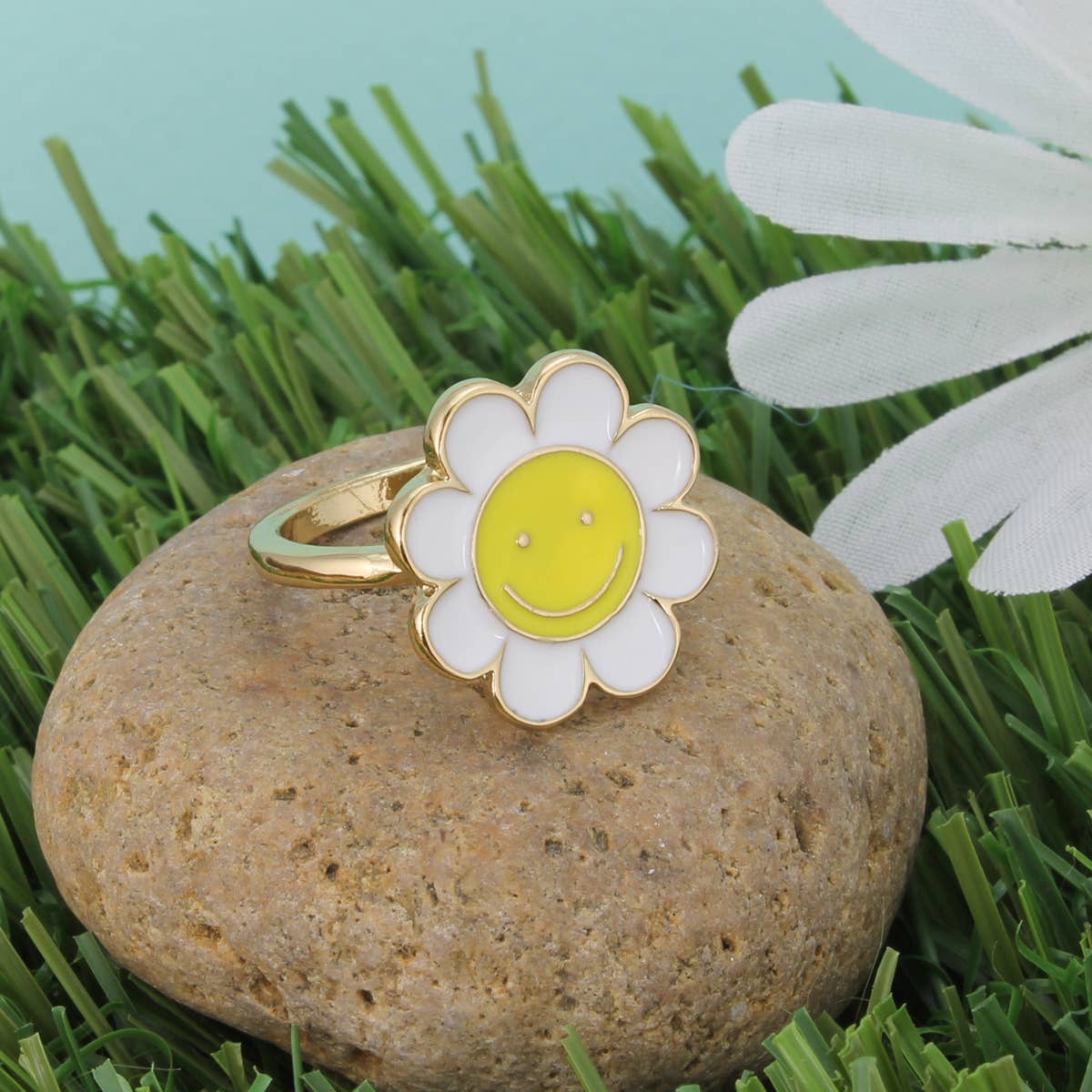 Elevate your style with our minimalist Gold Daisy Ring, expertly crafted from 18k gold PVD plated stainless steel. Its warm gold tone features a subtle red undertone, and the white daisy design adds a touch of minimalistic elegance to your look. Material: Stainless Steel Finish: 18k Gold PVD Plated Band Width: 1 mm Size (Daisy): 5 mm Available Sizes: 6-7-8 FREE RETAIL-READY PACKAGING Each item is carefully packaged for a polished presentation. Earrings come on off-white square cards featuring our logo (BEJ or Blueye Jewelry) and the material (stainless steel or sterling silver). Necklaces and bracelets are packaged on small cards with our brand name on the front and material on the back, then placed in long white polybags. Rings are packaged WITHOUT cards in zipped bags with size stickers. If you prefer to use your own cards, please let us know, and we will package your items without using our branded cards. *We offer personalization. Please contact us to customize your pieces.