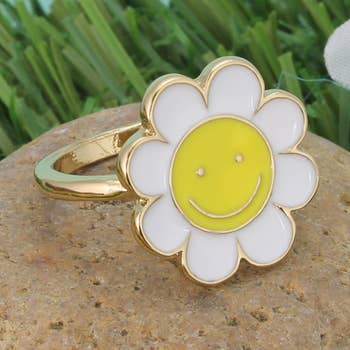 Wholesale Minimalist Daisy Ring - Tiny White Flower Ring - Floral Ring
