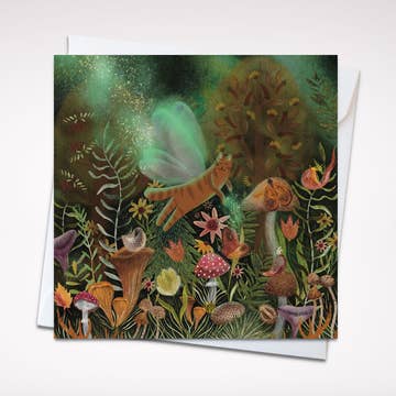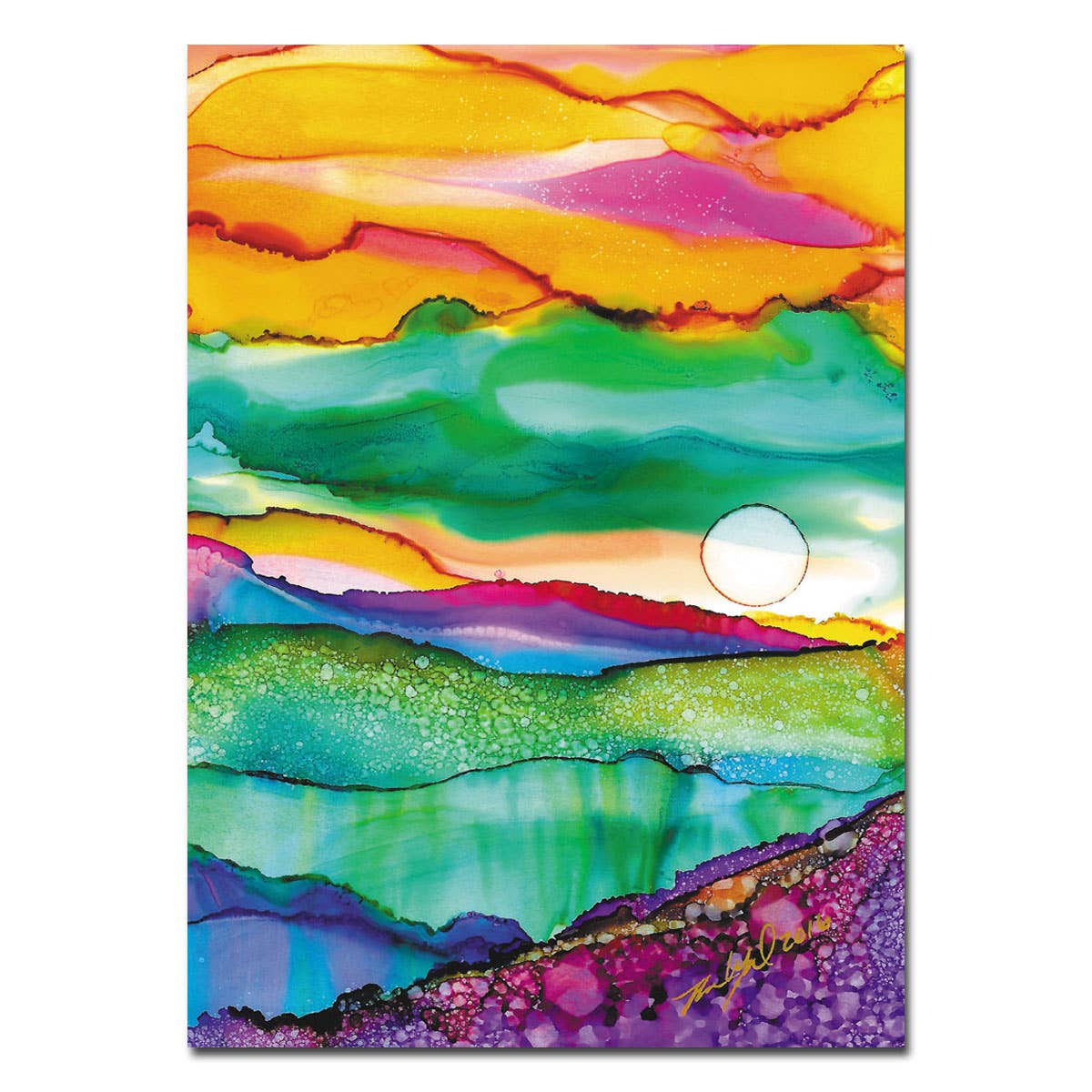 Under the sea where light glows in weird and wonderful ways. The artist painted a mural of this piece in her hometown of Eugene, Oregon. • 5 x 5 Inches • Full Bleed with Black Border Cover • Art Title, Artist Name/Information on Back • Digitally Printed for Brilliant Color • Accent Opaque Super Smooth 100 lb. Cover • White Envelope with Square Flap • Crystal Clear, Acid Free Archival Sleeve (10% Recycled Content)