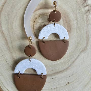 Made in Canada Color: Bronze, Brown, Orange, Yellow, and Yellow Gold Is Set: Individual Material: Clay Occasion: Everyday and Mother's Day Style: Bohemian and Statement Theme: Summer Product Language: English Weight: 90.72 g (3.2 oz) Packaging: Recyclable, Recycled, and Reduced Production: Ethically sourced, Fair trade, and Low-impact transport