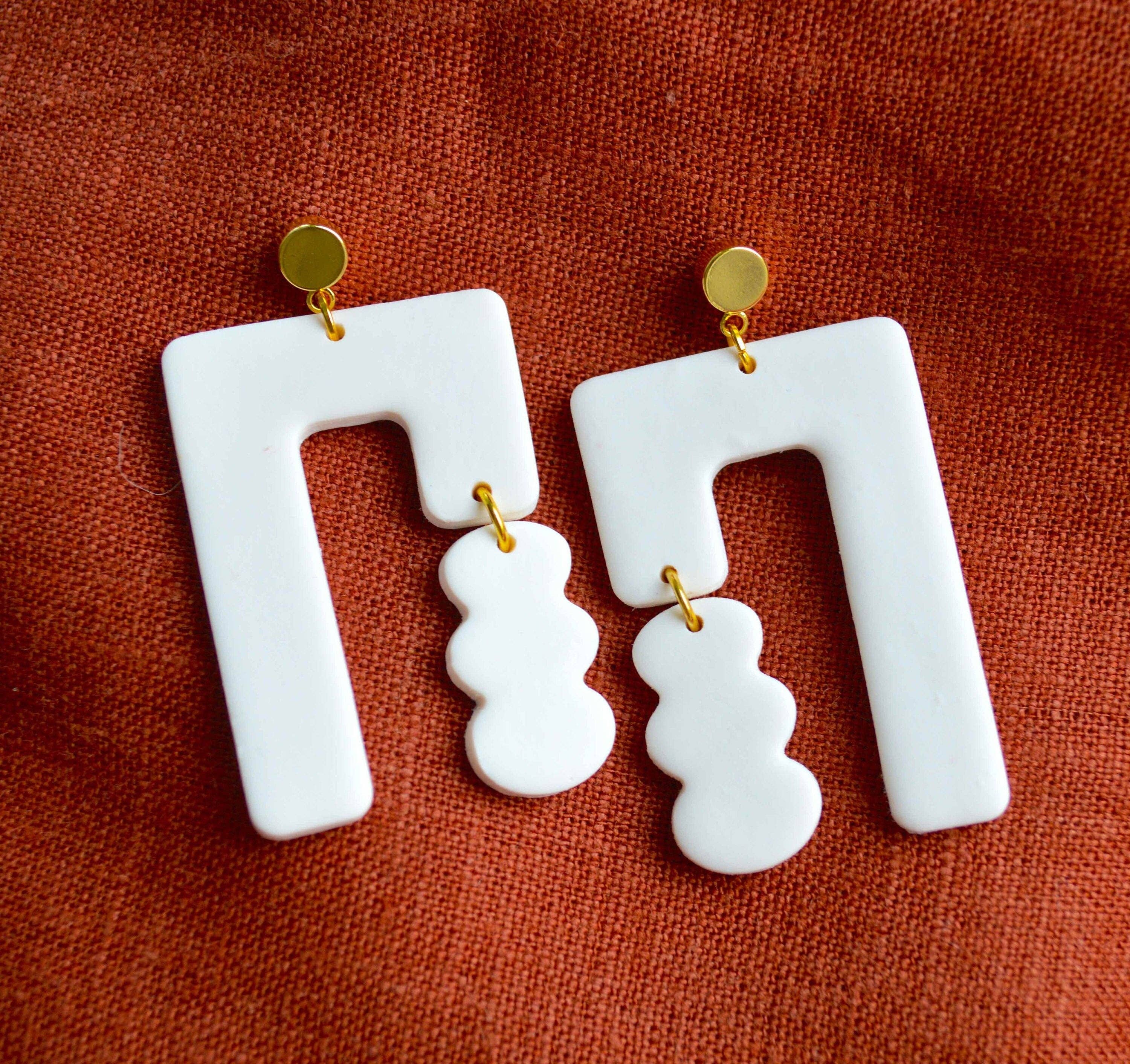 Polymer Clay Earrings by SageClayCo: Hypoallergenic/Nickel Free - Why Poymer Clay? Customers around the world have fallen in love with the durability, light-weight and versatile medium. It is a lovely material used in jewelry. See below for some FAQS! - How heavy is Polymer Clay Jewelry?: It's not! Polymer clay is extremely light weight and comfortable to wear. They do not weigh down on the lobes. They actually weigh about less than a quarter! -Is Polymer Clay Durable?: Polymer Clay is VERY durable when baked properly. At SageClayCo, we have perfected our baking method to ensure our pieces come out durable every single time. They can be dropped, bent, or snagged and will not break. Each piece is uniquely handcrafted with love in our home studio, in Winnipeg MB, Canada. Due to the unique hand-made nature of the jewelry, each pair may differ slightly, and colouring may vary between digital screens. Have more questions? Feel free to message me! I'm happy to answer any questions.