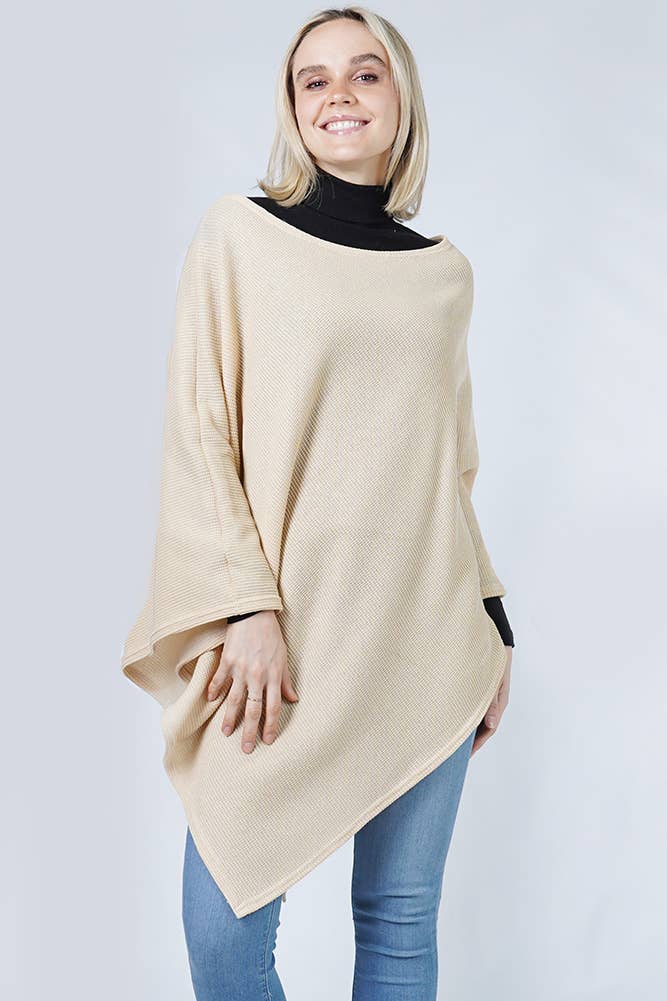 High-quality, knit from a soft blend of acrylic, offers stretch, flexibility, comfort, and breathability. This poncho is approx. 16.9'' shoulder, 16'' sleeve length, 25'' total length, one size fits most! Keep your look cozy and simple chic by wearing this Pullover Poncho Sweater. This striped knit poncho features a casual, relaxed shape, with 3/4 batwing sleeves, a ribbed neckline, and cuffs for a refined finish. The pullover styles for quick and easy wear, split sides and oversized fit make this poncho sweater a fashionable and cozy layering essential. Wear it with your favorite jeans, t-shirt, and ankle boots for a comfy everyday look.