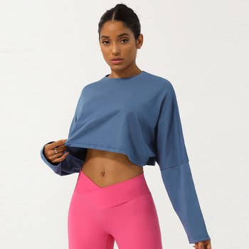 Wholesale Raw Hem Cropped Long-Sleeve Top
