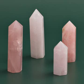 Natural Rose Quartz beautifully polished tower. These are simply stunning. They have been carved to perfection from our artisans in Gujarat, India. Calm inspired, gentle soothing rose quartz. The pink beauty of rose quartz shines sweetly through this soothing crystal. Details These are very thick and heavy, they are more weight for each tower than our last batch, and stunning! Large: Generous-sized tower measuring over 4.5-4.8inches tall for the large. The base measures over 1 inch. They are thick and beautiful! Medium is 4.3-4.5 inches tall Small size is 4 inches tall Handmade in Gujarat, India Sourced from known mines in India. Beautifully cut and polished Slight variations and very subtle imperfections naturally occur in each piece. Since each piece is mined from the earth and hand-polished, there are beautiful but slight variations from one piece to the next. These are not considered defects.