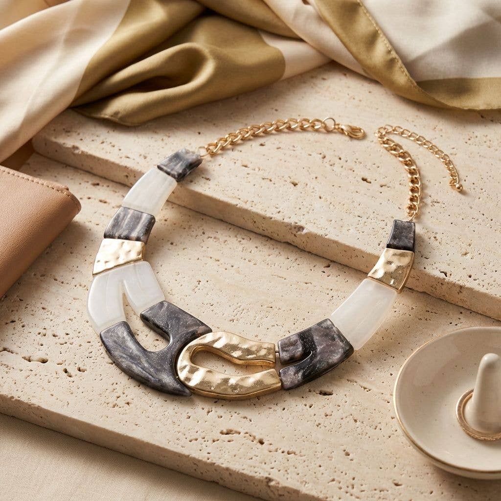 ALEX+SVET - Wholesale Bib Necklace - BOLZANO BW rubber necklace BLACK&WHITE line1
