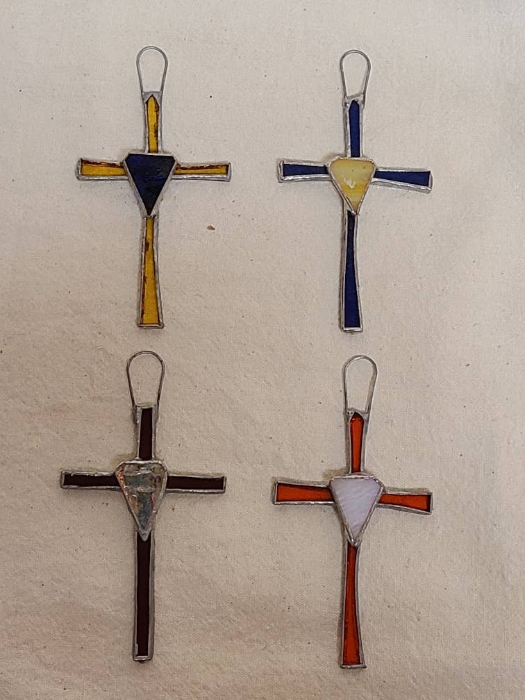 Whimsies began building beaded gemstone wall and jewelry crosses twenty years ago. We start by building a wire frame that is 3”x2”. We then string the mix of beads, pearls, Swarovski crystal and gemstones onto wire and sew them into the metal frame. They always look original and no two are ever the same. They can be used in wide variety of ways. Can be worn on a chain as jewelry or they can hang on the wall. We add a hanger so you can hang on the wall. Cut it off if you want to wear the cross. Made in the USA.