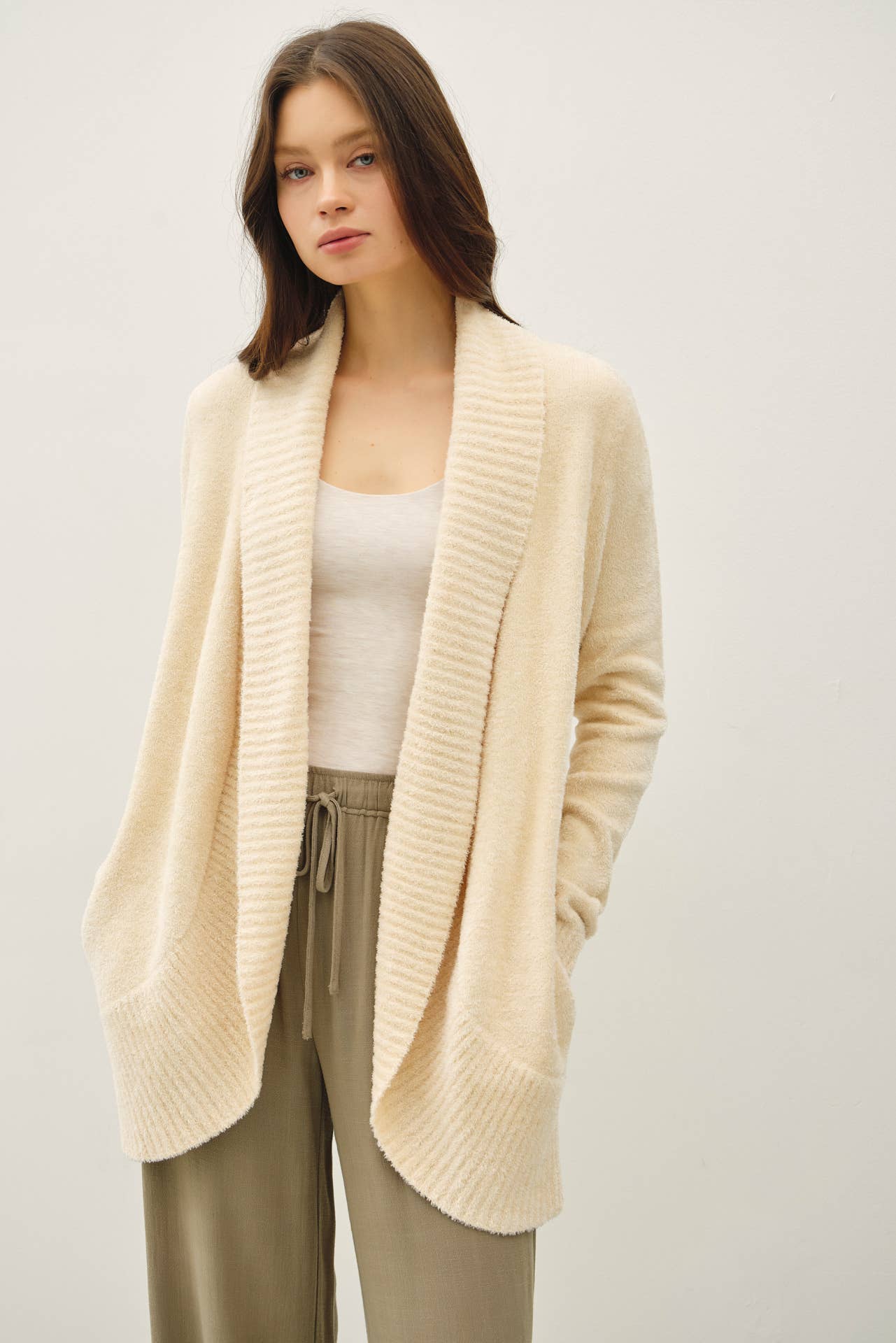 ",,...._ Open cardigan w/ slouchy pockets