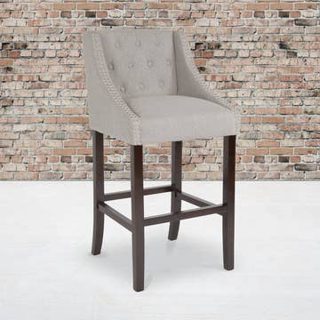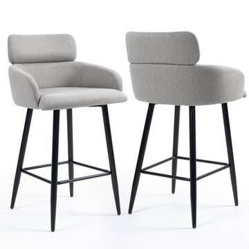 Bring upscale comfort to kitchens, island bars, or boutique lounges with this set of two 28.75 in counter-height stools. Wrapped in soft gray velvet, each chair features a gently curved arm silhouette and a diamond-tufted back that invites lingering conversation. Slender gold metal legs and an integrated footrest provide glam support, while plush foam cushions make every perch comfortable—perfect for morning coffee, evening cocktails, or retail display vignettes. Key Features ✔️ Set of 2; 28.75 in seat height fits 34–36 in counters. ✔️ Gray velvet upholstery with diamond-tufted back. ✔️ Armchair sides give extra lateral support. ✔️ Gold steel legs add modern glam flair. ✔️ Built-in footrest eases leg pressure. ✔️ High-density foam cushions ensure lasting comfort. ✔️ Non-marring pads protect hard floors. ✔️ Quick, tool-free assembly.