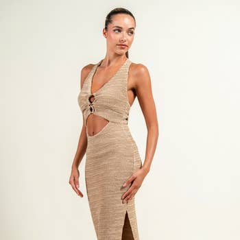 SY065 Sultry Bow-Accent Slit Knit Dress - Spring/Summer