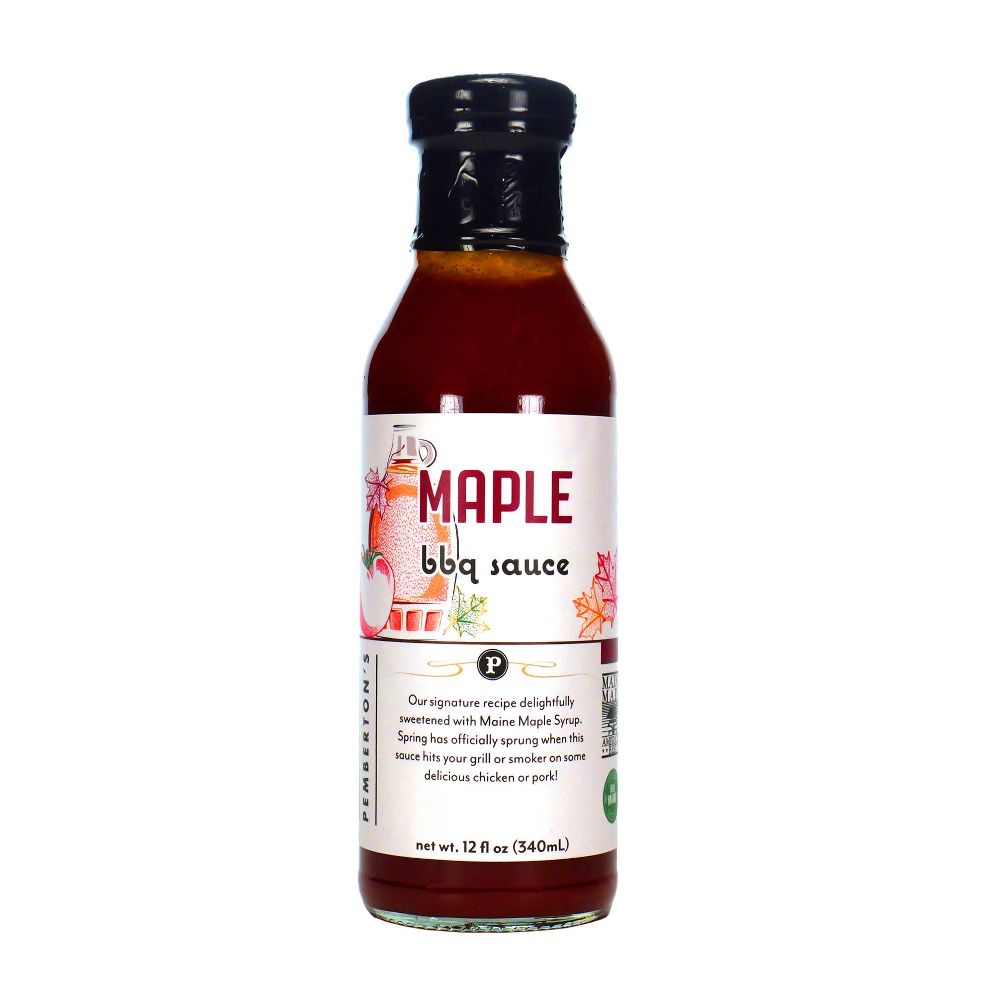 A premium, all-natural barbecue sauce that uses pure maple syrup and honey as healthful sweeteners to go along with a carefully chosen blend of spices. Pemberton's maple bbq is a sweet savory concoction with fantastic flavor that transforms any barbecue into a delicious feast! Pemberton's maple bbq steak sauce is ideal for any occasion that requires you to fire up the grill. It's a sweet savory blend of pure maple syrup, honey, and spices that come together to form a delicious marinade and basting or dipping sauce for fall-off-the-bone ribs. Pemberton's maple barbecue sauce is ideal as a marinade and basting or dipping sauce for ribs. Tomato paste, water, apple cider vinegar, pure maple syrup, honey, canola oil, garlic, salt, citric acid, and spices.