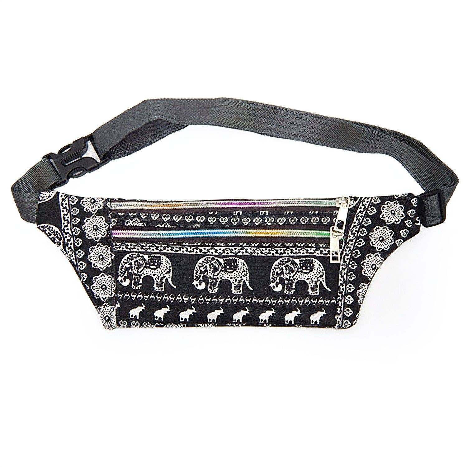 Fanny pack is the ultimate accessory for people on the go. This waist bag has everything—the right size, inside pocket, and adjustable straps—to become a favorite among festival-goers, tourists, or fashion trend enthusiasts 100% polyester Dimensions: H 6.5'', W 13'', D 2.75'' Top zipper with 2 sliders Small inner pocket without zipper Water Repellent lining, piped inside hems 1¼'' wide adjustable straps with plastic buckle