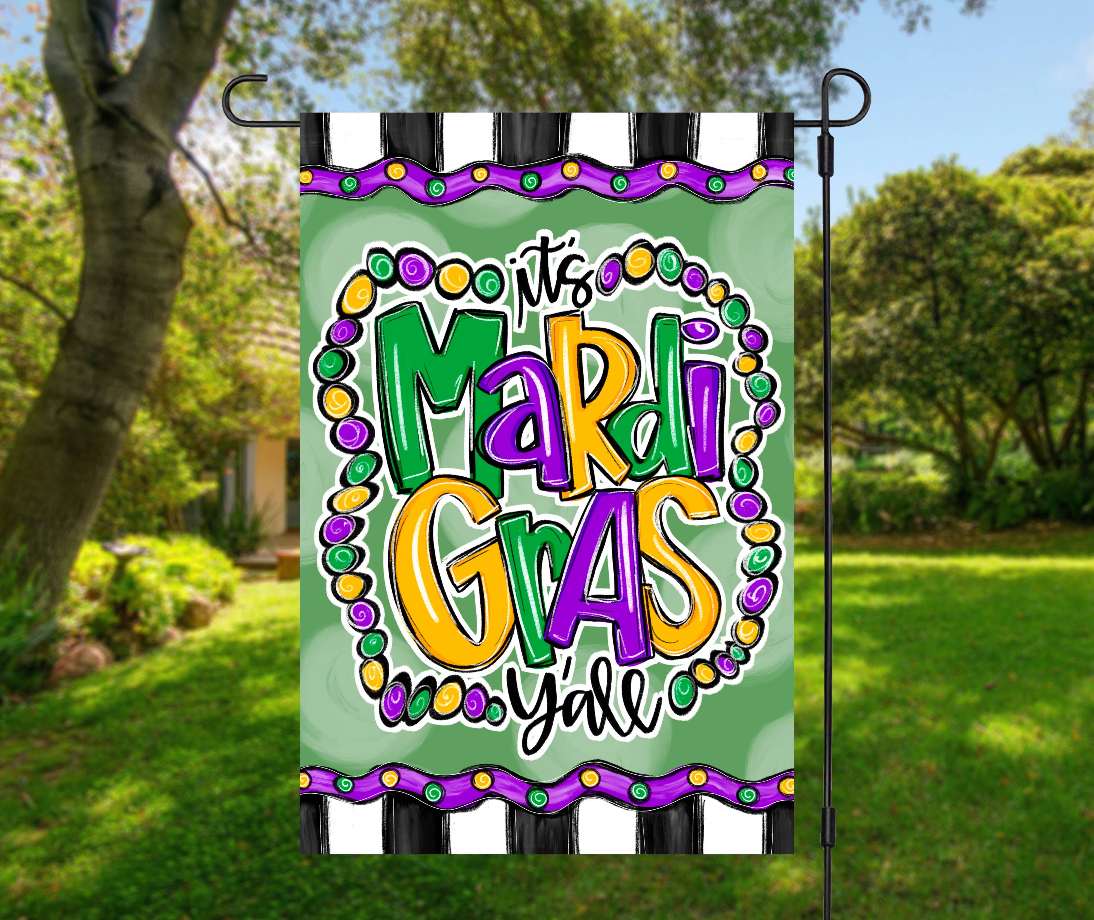 MARDI GRAS BEAD DOG FLAG GARDEN