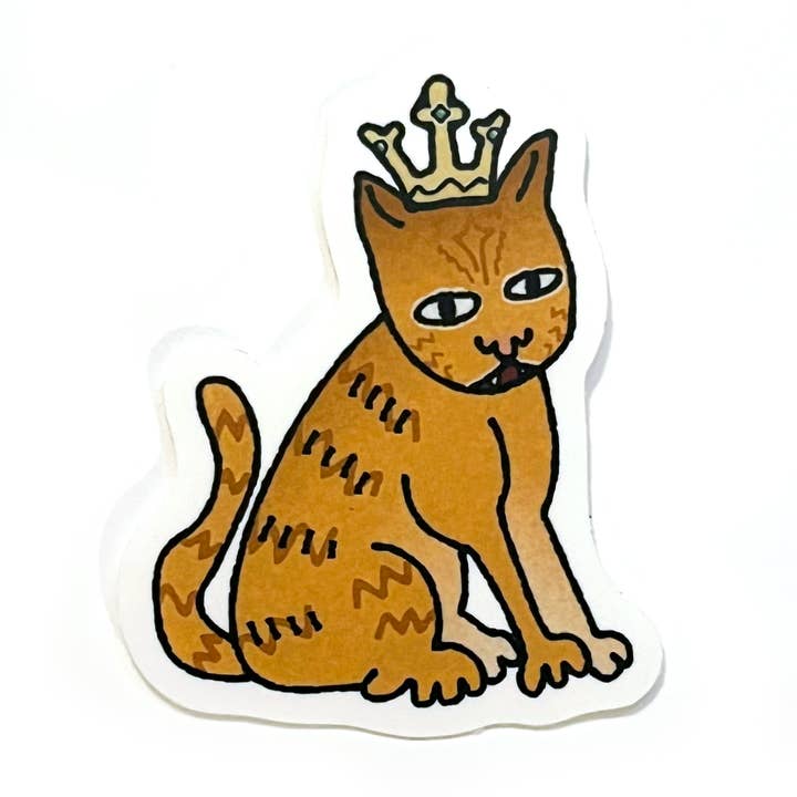 Long live the king dog! The peasantry listen with rapt attention to his mighty decree: "woof, bark grrr awowowoo" So sayeth the king. Material: Water/weather-resistant high-quality vinyl printed with eco-friendly ink. Smooth matte finish. Good for indoor or outdoor use. Size: 2.375”x2.875” Made with love in the USA. Designed in Rhode Island and manufactured in Vermont. IG: selgerosa.design