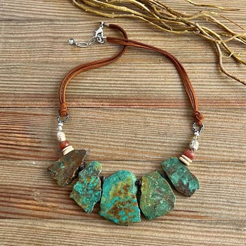 Turq- turquoise nugget boho necklace vegan suede