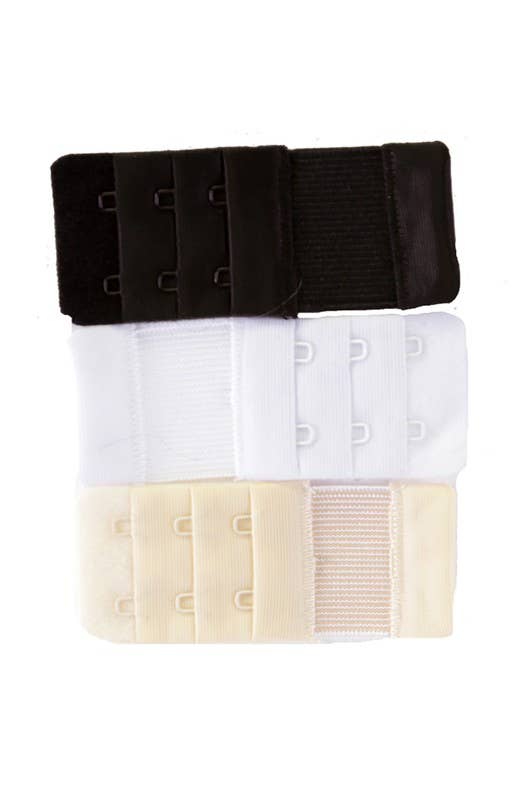 - 3 hook bra extender. - 3 pc set (black, nude, white). - One size.