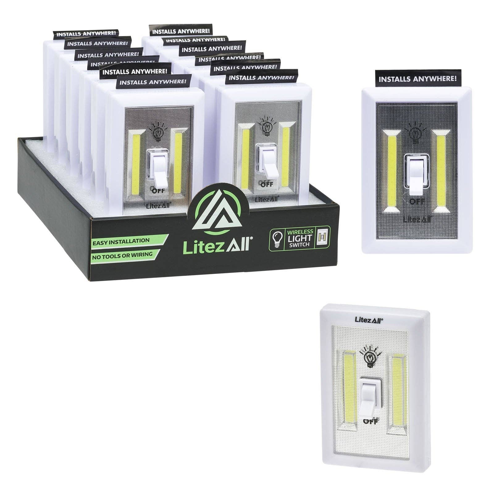 Introducing our convenient cordless light switches, now available at wholesale bulk discounts and presented in a PDQ display for easy showcasing! With these innovative switches, installation is a breeze—no need for an electrician or complicated wiring. Simply mount them wherever you need light, whether it's a closet, pantry, or under-cabinet area, and enjoy instant illumination at the touch of a button. These battery-operated switches offer hassle-free operation and versatility, making them perfect for homes, offices, and beyond. Grab this essential lighting solution today and provide your customers with a convenient way to brighten up any space at discounted prices!