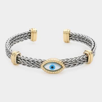 Wholesale Black Evil Eye Cuff 18k Gold Plated Steel Bangle - FGS