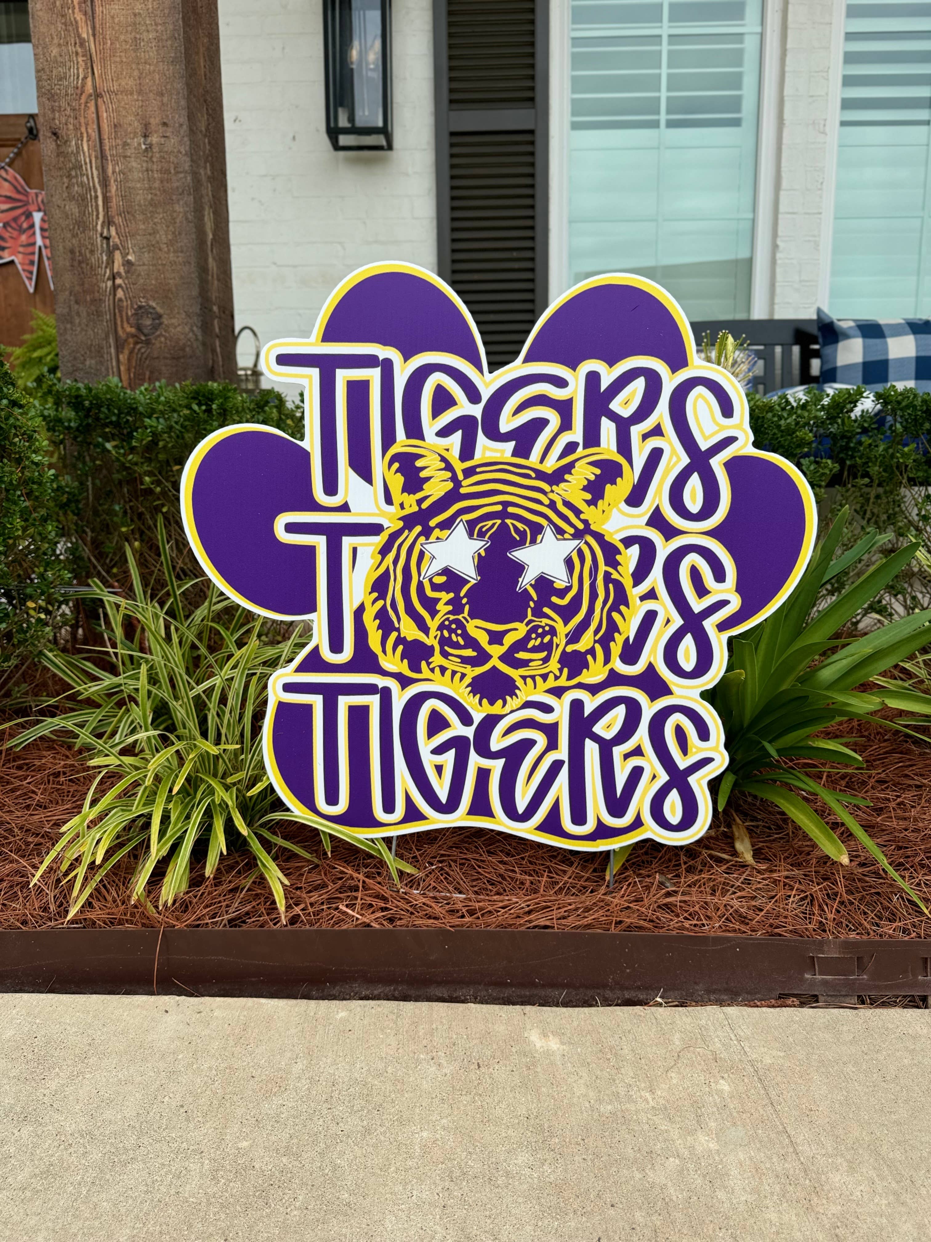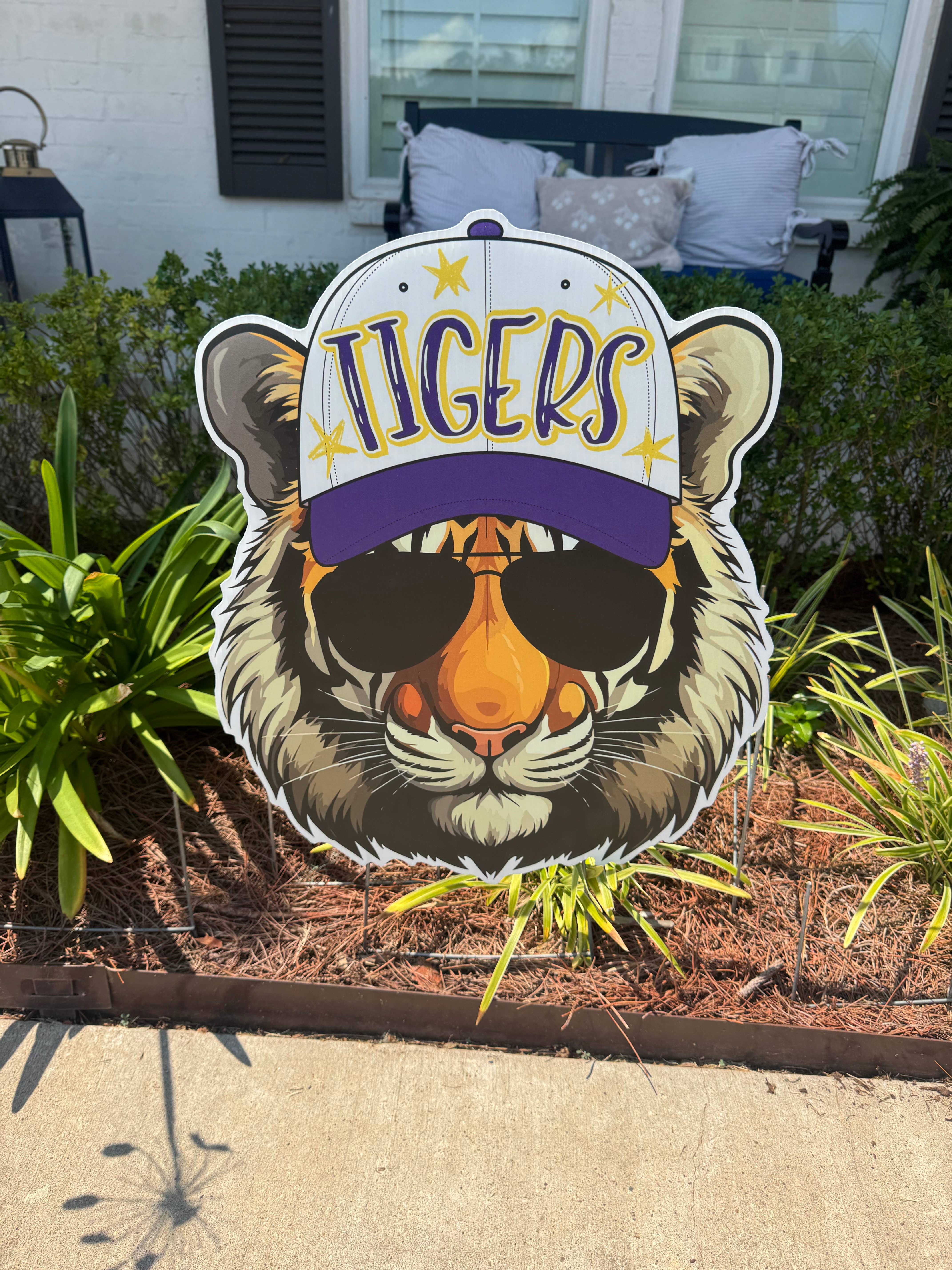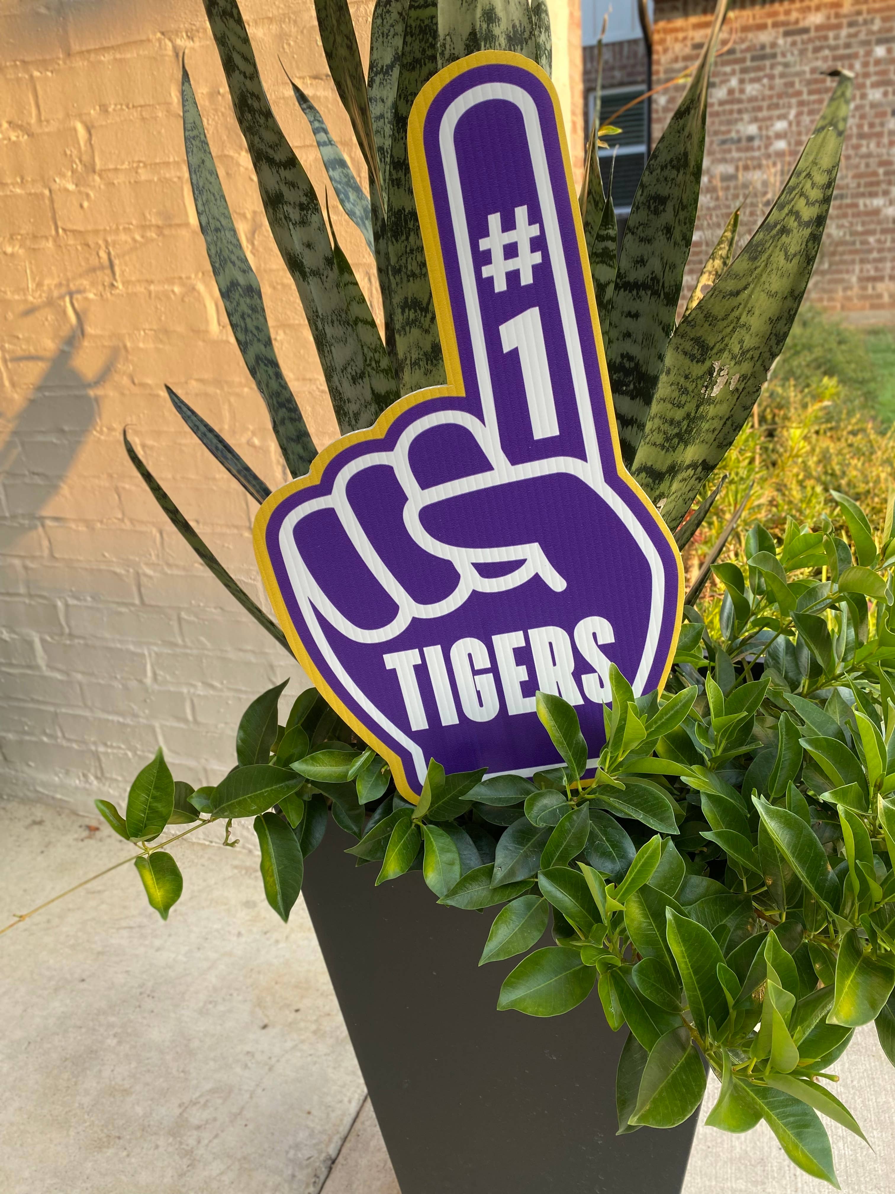 Revamp your front porch with our Geaux Tigers flower pot and yard sign! Show off your love for the team with this Tiger Flag Sign - the perfect addition to your home's decor! Geaux Tigers! Stakes included The Yard Sign 28.9706” w x 14”h The Flower Pot11.9879” w x 6”h