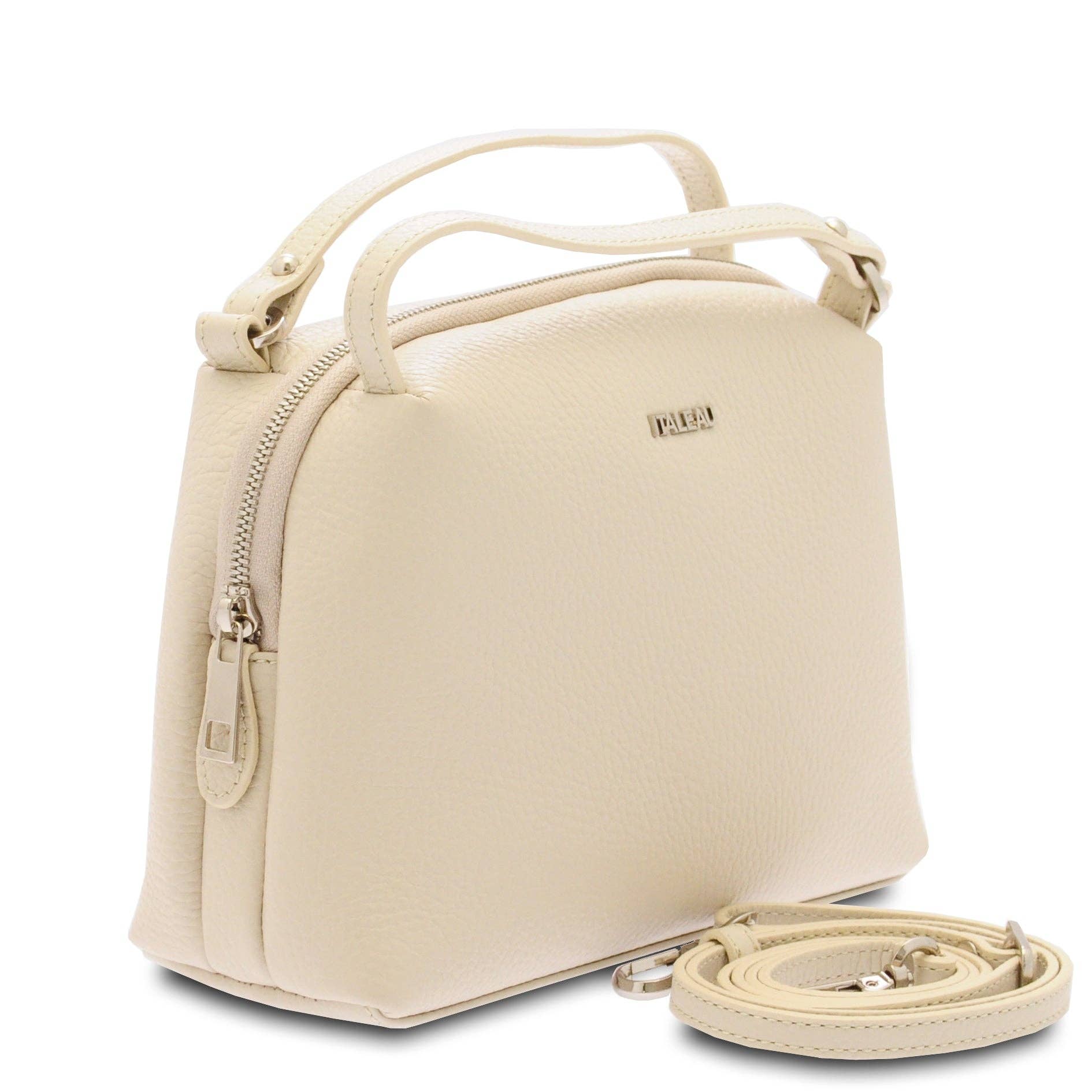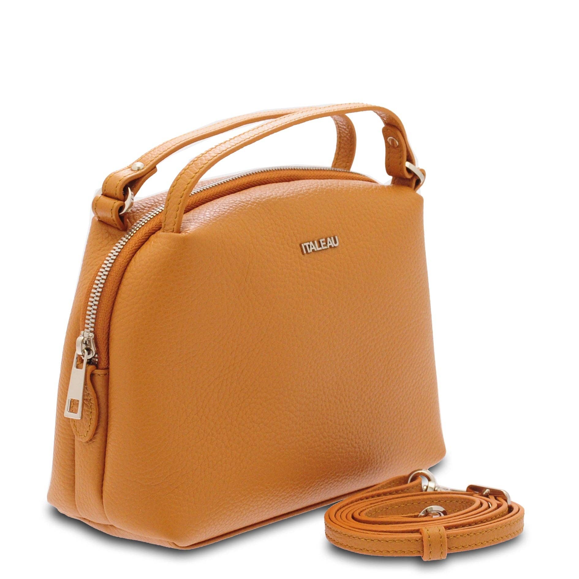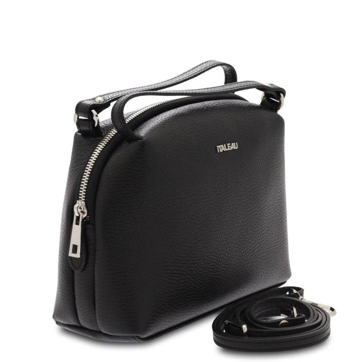 This exquisite handbag effortlessly blends timeless design with sophisticated style and function. The pebbled leather is soft, certified Italian and tanned and treated naturally to be water resistant. Orietta is thoughtfully designed to fit all of your daily essentials and embodies Italian elegance. Details: * Certified Italian water-resistant leather outer * Approximately 11.8"H x 15"W x 5.25"D * Two inside pockets, one external zip pocket * Top zip closure with braided brass & leather pull * Solid leather single fixed strap is 7.5" * Removable shoulder strap is adjustable up to 25" * Wear as crossbody or shoulder bag or carry as top handle bag with strap removed * Approximately 1.65 lbs * Hardware is brass & steel * Handmade in Italy