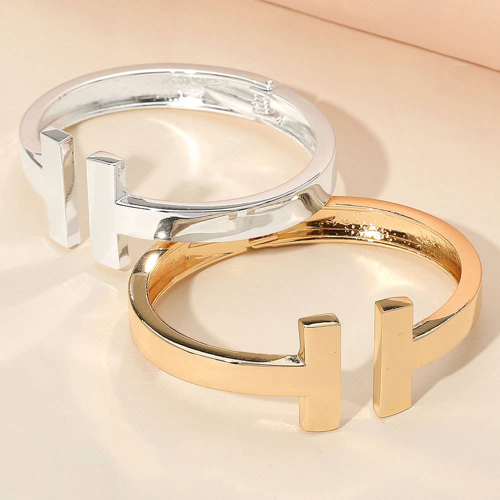 Geometric Metal T Bar Hinged Bangle Bracelet