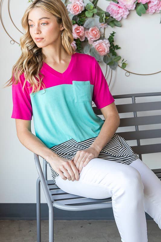 Pink Stripe Colorblock Drop Sleeve Loose Top for wholesale on Faire