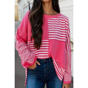 Pink Stripe Colorblock Drop Sleeve Loose Top for wholesale on Faire2