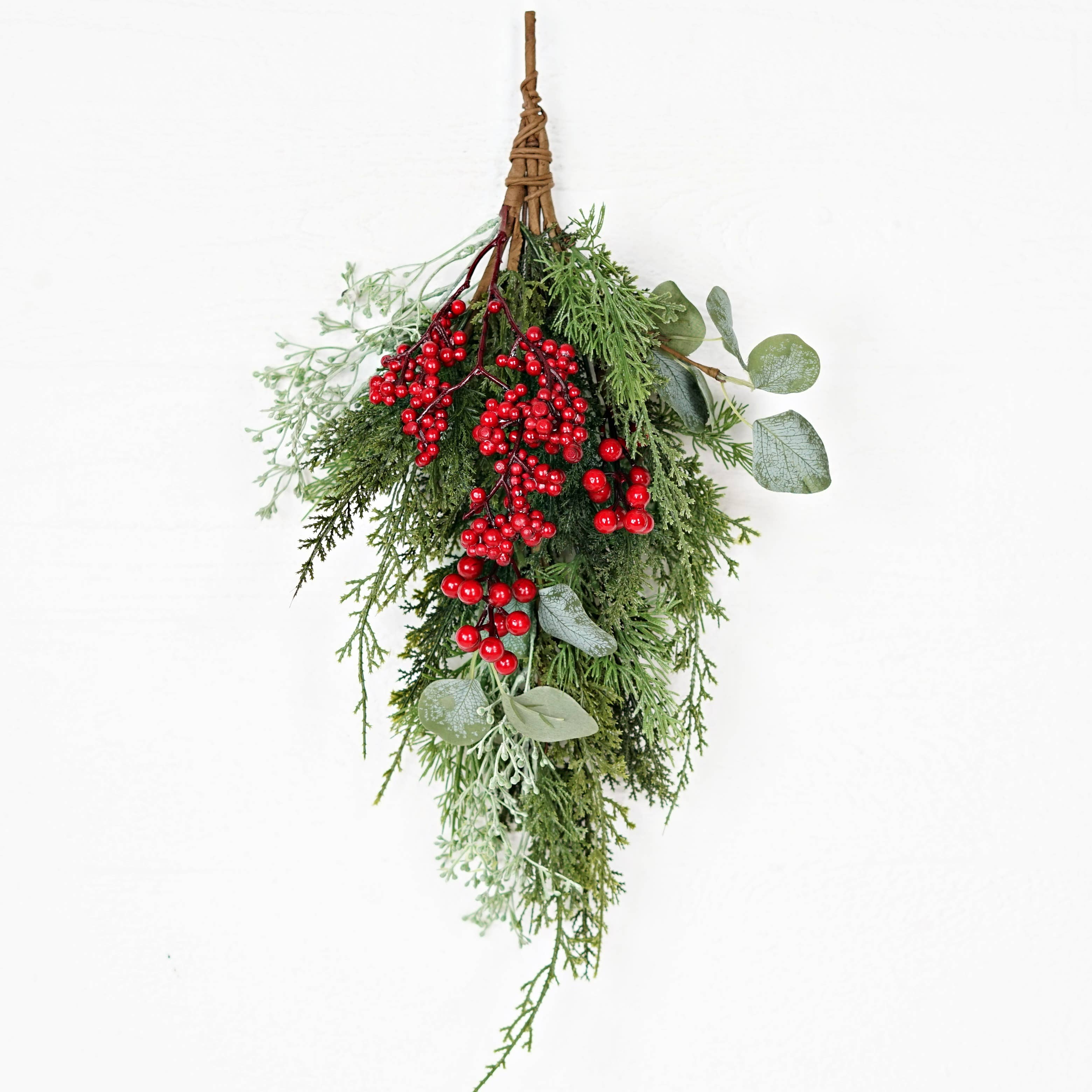 16IN PICK-FROSTED SOFT PINES WITH RED BERRIES Christmas holiday berry decorations