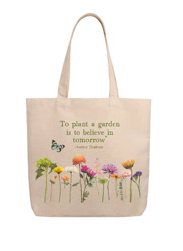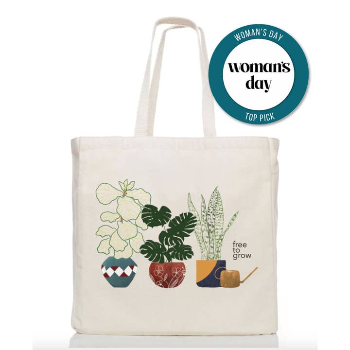 Details: - Featured by Oprah Daily - "Top 5 Best Gifts that Give Back" - Manufactured in a fair trade factory in India with organic GOTS and Fairtrade certified cotton - Exclusively designed and painted by The Tote Project - Artwork printed with water-based, eco-friendly inks - Sturdy cotton webbing handles - Interior water bottle pocket, cell phone pocket and key ring 10% of the gross profits from your purchase will be donated to fight human trafficking and support survivors as they pursue their dream jobs. Measurements: 16" x 16" x 5.5" Interior Cell Phone Pocket: 8’’ x 8" Interior Water Bottle Pocket: 5.5" x 11"