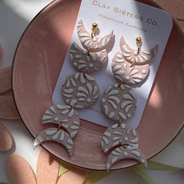 Made in United States Color: Pink and Purple Material: Brass, Clay, and Gold Plated Theme: Sun, Moon & Stars Weight: 14.17 g (0.5 oz) Dimensions: 4.6 x 3.8 x 0.8 cm (1.8 x 1.5 x 0.3 in)