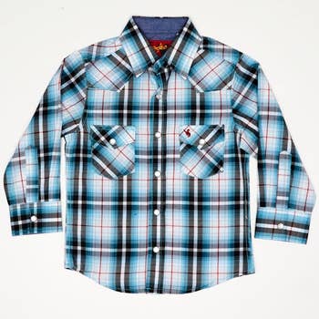Blue aztec baby kids flannel button up shirt