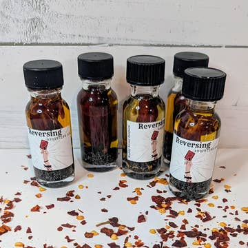 Dragon's blood oil is used to create protective barriers; spiritually and physically. It's associated with personal empowerment and can be used to amplify the energy of other spell work ingredients. This sacred ritual oil is meant to be used in daily devotion, ritual, ceremony, or prayer. It can be used to anoint yourself, doorways, windows & altar tools. It can be added to spell jars, ritual baths, and can be used to dress candles for protection work, hex reversal, energy clearing or banishing negative energies. Scented with a beautiful blend of dragon's blood fragrance, tonka bean and a hint of jasmine. 1 fl oz Ingredients: grape seed oil infused with dragon's blood resin and alkanet root², essential oil blend, fragrance ²organic Our products are intentionally & thoughtfully created as tools to inspire those who are on a witchcraft or spiritual journey and can be used during rituals, spells, manifestation, prayer, ceremony or daily devotion.