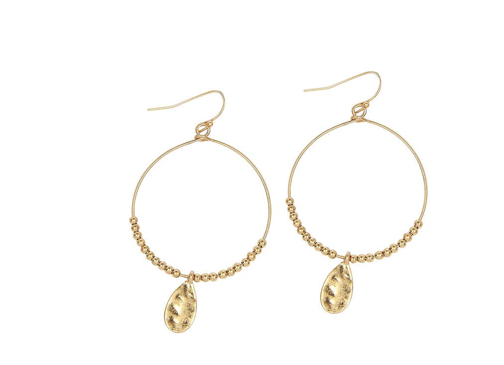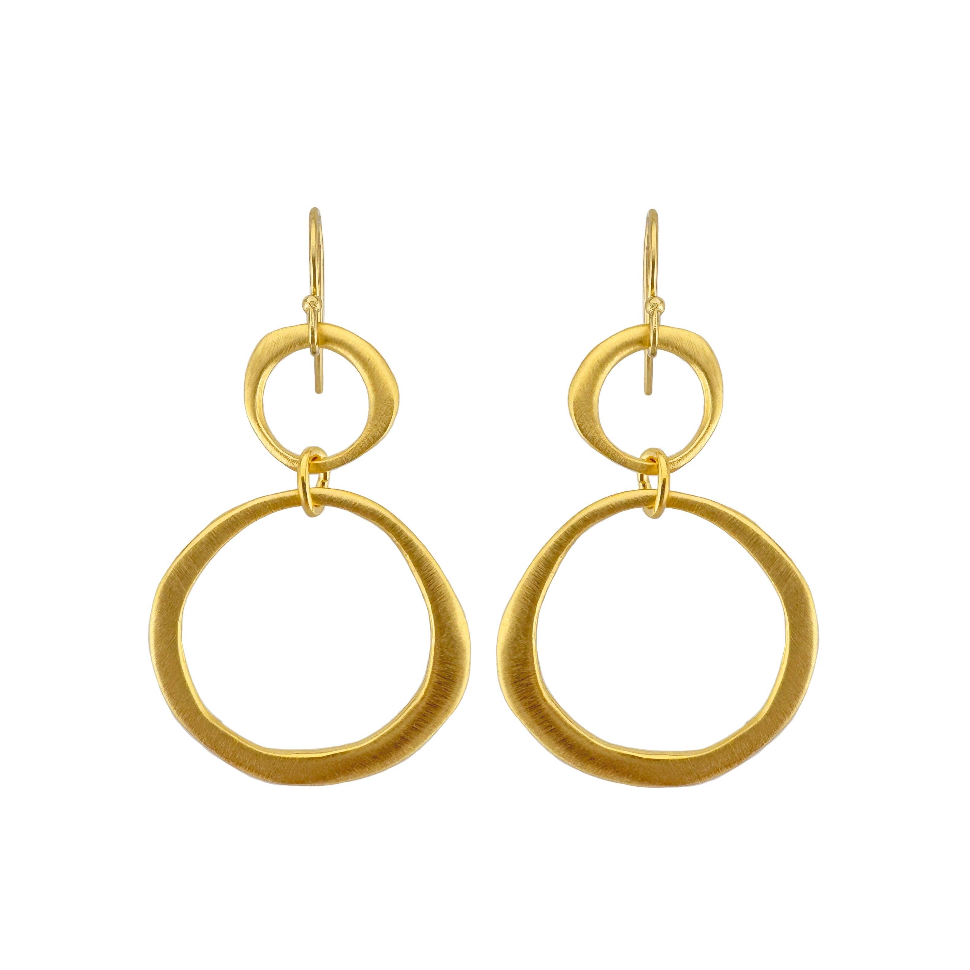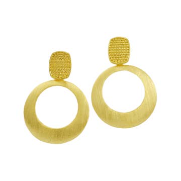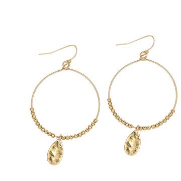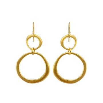 The Satchel Earring in Gold Pyrite is for your customer who must have her jewelry on every day and as such, her earrings are an essential part of her expression. We find that our retailers say our earrings are for those who like to spoil themselves and with the Satchel, many report customers with several pairs in various stones. In this brand best seller, a brushed gold teardrop anchors a sleek circular hoop. Suspended at the base, a luminous gold pyrite stone, adds a soft, faceted glow. The balance of clean lines and organic texture creates a look that feels both modern and timeless, perfect for everyday elegance or elevated occasions. Lightweight and versatile, they offer a sophisticated yet playful accent to any look. We have partnered not only with Anthropologie, Anthropologie Europe, and Sundance, but 600+ additional retailers nationwide, and we’d love to partner with you next! Hypo allergenic ear wires, semi precious stones, 1.5" length.