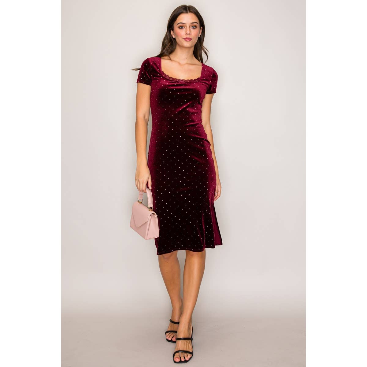 The dress is super cute. The stock photos do not really show how sparkly the dress truly is! The little studs really make the dress pop.