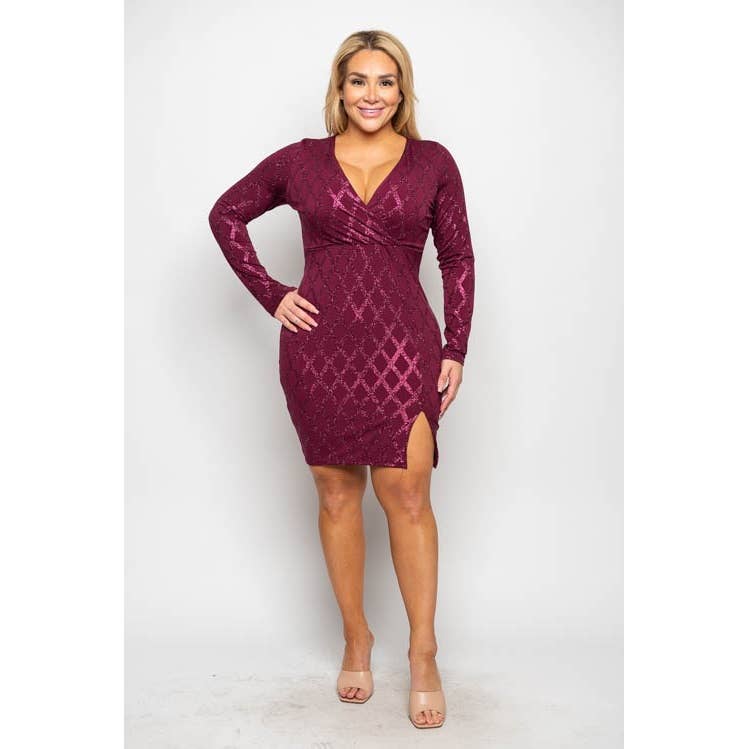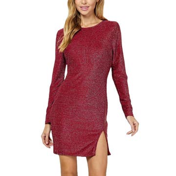 Long Sleeve Flocked Mesh Mini Dress with Cutout Back - Boat Neck - Cutout Back Detail - Long Sleeve - Slim Fit - Mini Length - Flocked Mesh - Fully Lined - 95% Poly 5% Spandex - Imported. Designed in USA. ** Size & Fit *********** Model is wearing size M Measurements taken from size M Height - 5' 7 1/2" / 175.3CM 32B-25W-36H