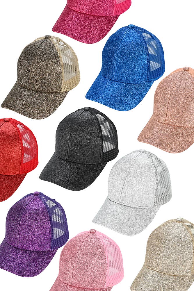 Stay stylish and comfortable in this special CC® glitter pony cap! Featuring a glitter pattern, a ponytail opening, a hidden adjustable velcro strap, and a mesh back, this six-panel cap offers a fashionable design and the authentic cc® brand quality you trust. With an adjustable fit, this cap offers two sizes. With the 60% cotton & 40% polyester construction, this cap has truly contagious support and an irresistible sparkle you'll love! Product features: Glitter pattern Ponytail access in the back Blank cap for crafting Mesh back Hidden adjustable velcro strap Authentic CC ® brand quality Truly contagious support and customer service 6-panel mesh CC® cap Distributed by a family-owned USA business - made internationally Truly contagious support and customer service BT6, BT 6 Sizing: C.C ® tag || fits size youth 5/6 - adult || (head circumference 20" - 24") Remember kids get 85% of their full head growth by the age of 5. if you are not sure on the size,