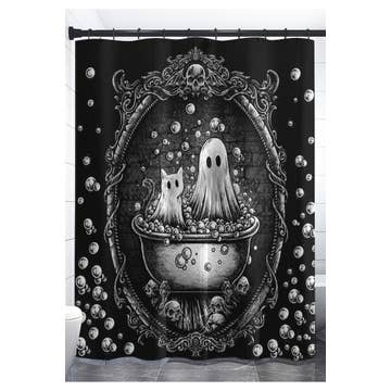 🎵 No showers! No baths! Keep water away from cats! 🎵💧🙂↔️🐈⬛🐈🫸💧 * Curtain measures 72" (W) x 72" (H) - 183x183cm * Made with 100% recycled polyester * Water-resistant, liner optional * Machine washable * Features 12 grommet buttonholes ✧CARE: -Machine wash cold on delicate or hand wash -Don't use bleach -Tumble dry