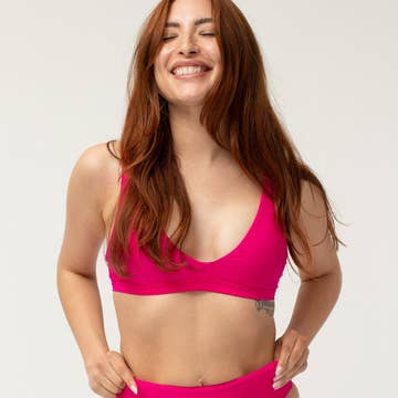 Pink High Rise Ribbed Swim Top
