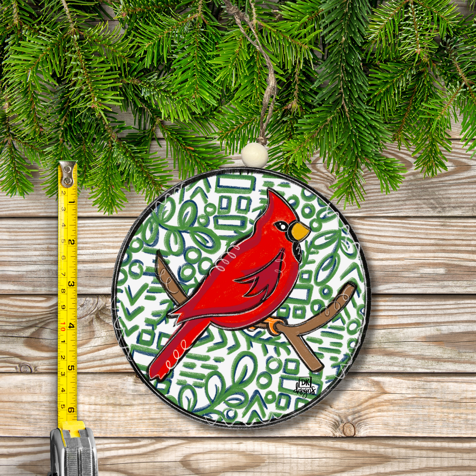 The Cardinal Navy Green Door Hanger is the perfect “jewelry” for your door! Show off your style with a beautifully designed door hanger featuring a red cardinal bird with a leafy nave and green background. Every DK Door Hanger is UV-printed on moisture-resistant, high-quality 1/4" board and sealed with two coats of gloss finish for lasting protection. Each design includes a fully wired beaded handle for easy hanging and display. Key Features: * UV-Printed, Durable Design * Moisture-Resistant High-Quality Board * Sealed with 2 Coats of Gloss Finish * 23" * Fully Wired Beaded Handle * Indoor & Outdoor Ready * Note: Placement Under Cover Helps Maintain Quality & Longevity * Proudly Made in the U.S.A