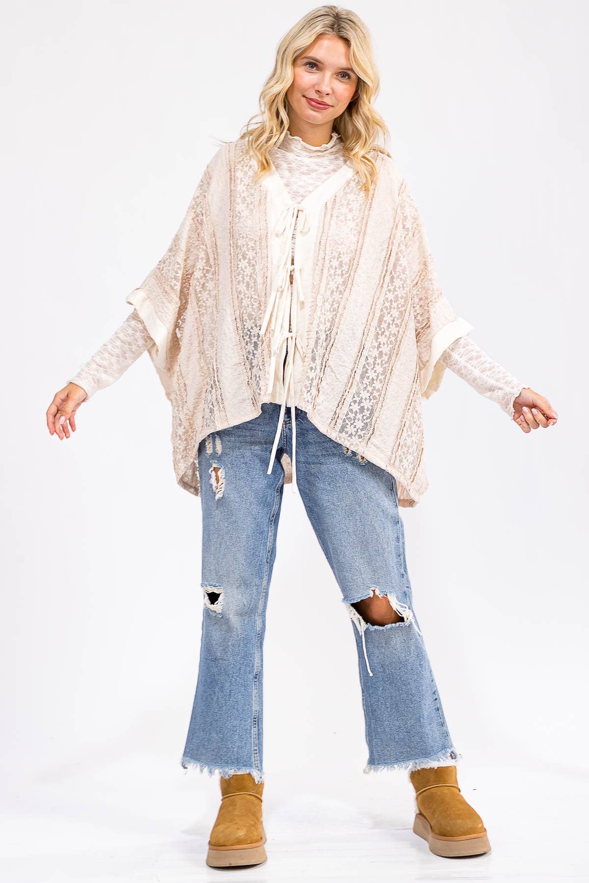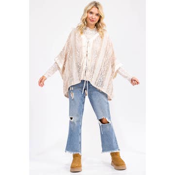 Experience the unique blend of style and comfort with this printed mesh pancho top from Origami Apparel. Inspired by the delicate artistry of lace and crochet, this tunic is perfect for those seeking a classic yet contemporary look. It's an ideal addition to your wardrobe, effortlessly pairing with a variety of bottoms for versatile styling options.