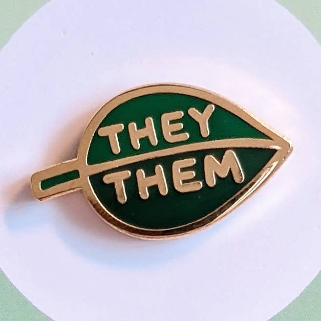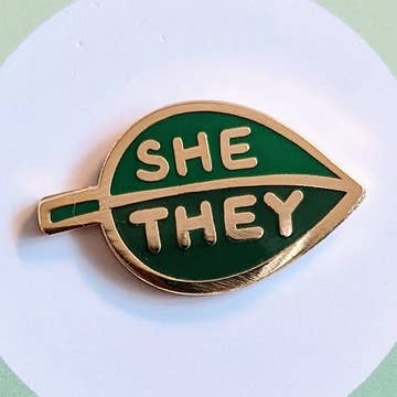 Pronoun Leaf Pin - she/they