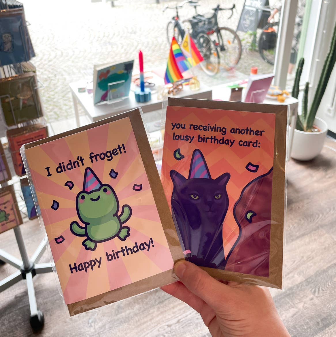 Musste nachbestellen, da die Aufkleber (insbesondere die Aufkleberbögen) so gut verkauft wurden. Habe mich entschieden, diesmal auch einige Karten und Pins zu kaufen. Einige der Karten waren bereits nach ein paar Stunden auf der Verkaufsfläche sofort verkauft. Wirklich großartiger einzigartiger Stil der Produkte. Katzen & Frösche sind in meinem Laden immer willkommen :) Auch immer großartige Kommunikation mit Mona. Keine Beschwerden
