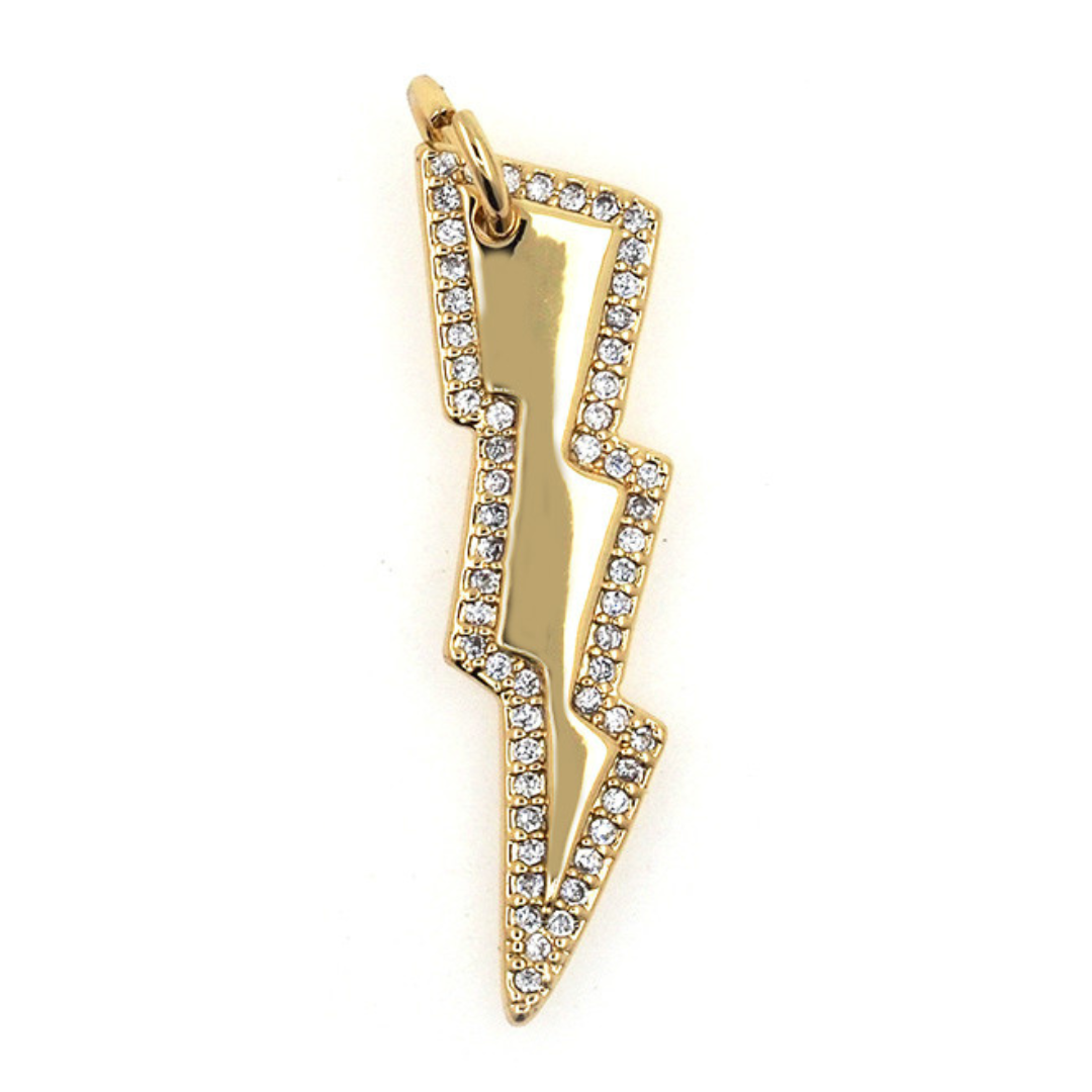 Spark your inner energy with this electrifying Lightning Bolt Charm. Symbolizing power, inspiration, and sudden insight, the bold design captures the dynamic force of nature. Perfect for those who embrace their creativity and drive, this charm reminds you to be fearless in chasing your passions and to trust the flashes of brilliance that strike when you least expect them. Help your customers customize the perfect sentimental charm bracelet or necklace with our lightning bolt charm that will last for years to come! ✦ Waterproof, non-tarnish, hypoallergenic ✦ 18K Gold PVD coated 316L Stainless Steel ✦ Perfect for accenting charm necklaces and bracelets ✦ A must-have for permanent jewelry and charm bars! - PVD COATING - We use the process of PVD Coating that will hold up best to everyday wear and will never turn your customer's skin green. Approx. Dimensions: 25mm x 6mm Approx. Jump Ring Size: 6mm Approx. Weight: 0.5 grams