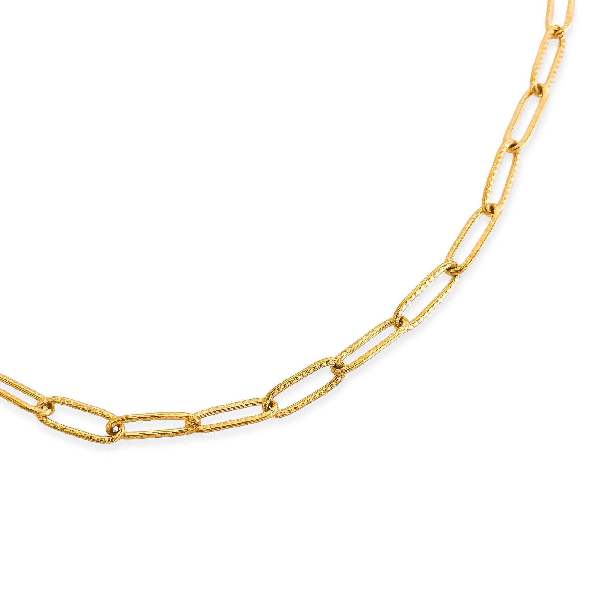 Water Resistant Necklace Step into the spotlight with this captivating paperclip chain necklace, where sleek, elongated rectangular links blend seamlessly with delicate circular connectors. The high-polish finish glistens with every movement, creating an eye-catching allure. Material: Gold / rhodium plated, triple plated, over stainless steel - water resistant/waterproof Size: Approx. 0.16" thick Length: Approx. 16", plus a 2" extension Closure: Lobster clasp Also available in 37" (T1N03). Imported.
